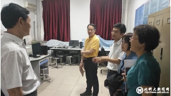 而后,薛庆国一行人又来到了物理本科教学实验室,依次参观了高等物理实验室、传感器和计算机接口、光信息技术实验室和球差电镜实验室。相关的实验室负责人就实验室的基本情况,课程开设情况等一一作了详细的介绍。