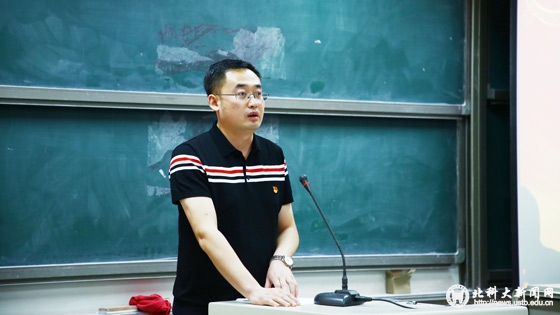 典礼结束后,纪洪广做了题为《深刻领会十九大精神,做中国特色社会主义的建设者和接班人》的讲座。纪洪广从深刻领会十九大会议精神及其重要意义、新时期高等教育的新目标和新任务以及如何成长为一名合格的社会主义建设者和接班人等三个方面展开讲述:通过党的十九大报告与之前思想政治课教材中的差异对比,清晰有力地阐明了党的十九大报告中新思想;通过讲解习总书记的五四讲话,使学生明确了高等教育的目标和人才培养的要求;通过自身成长经历、高考对学生的影响以及未来职业选择、人生定位等方面,带领学生忆苦思甜、指导学生做好学习规划、引导学生明确追求,争取成长为一名合格的社会主义建设者和接班人。